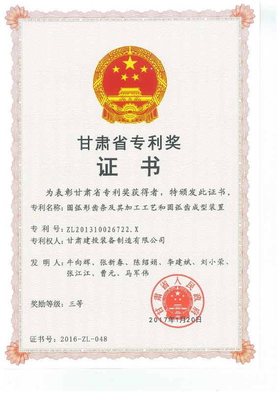 2016年甘肅省專利獎(jiǎng)