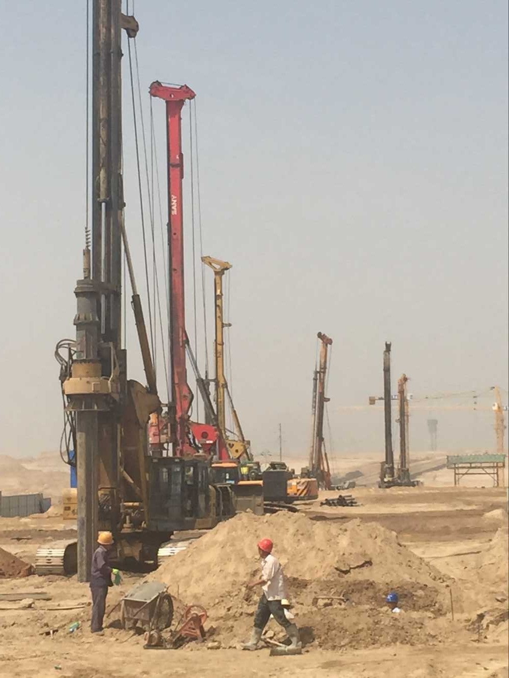 對于該工程來說,工程服務(wù)公司肩負(fù)著巨大責(zé)任同時(shí)也面臨著一系列新的挑戰(zhàn)。首先,“工期緊、任務(wù)重”是本工程的主基調(diào)。施工現(xiàn)場共有7臺(tái)旋挖鉆機(jī)參加施工,總樁數(shù)約500多根,長度50米,直徑900cm,計(jì)劃八月中旬完成整個(gè)樁基工程。這就考驗(yàn)到隊(duì)伍的專業(yè)團(tuán)隊(duì)合作能力,在高溫的考驗(yàn)下,施工人員不僅要保證施工的速度,更要確保施工安全、高效的達(dá)到標(biāo)準(zhǔn)水平。除此之外,此次工程與以往不同之處是,灌注樁所用的所有鋼筋籠由工程服務(wù)公司外協(xié)施工隊(duì)伍自主加工制作、焊接、綁扎、加工等流程均由公司提供專業(yè)技術(shù)支持,從而保證鋼筋籠質(zhì)量達(dá)到國家規(guī)范標(biāo)準(zhǔn)。這項(xiàng)工作不僅擴(kuò)展了公司業(yè)務(wù),加大了工程量,增加了更全面的施工經(jīng)驗(yàn),也為公司提高了工效、節(jié)省了成本,激勵(lì)隊(duì)伍在新材料、新工藝、新技術(shù)上不斷積極探索,完成一項(xiàng)項(xiàng)更有難度的挑戰(zhàn),在培養(yǎng)人才方面更加全面廣泛,在施工技術(shù)上更加專業(yè)可靠。